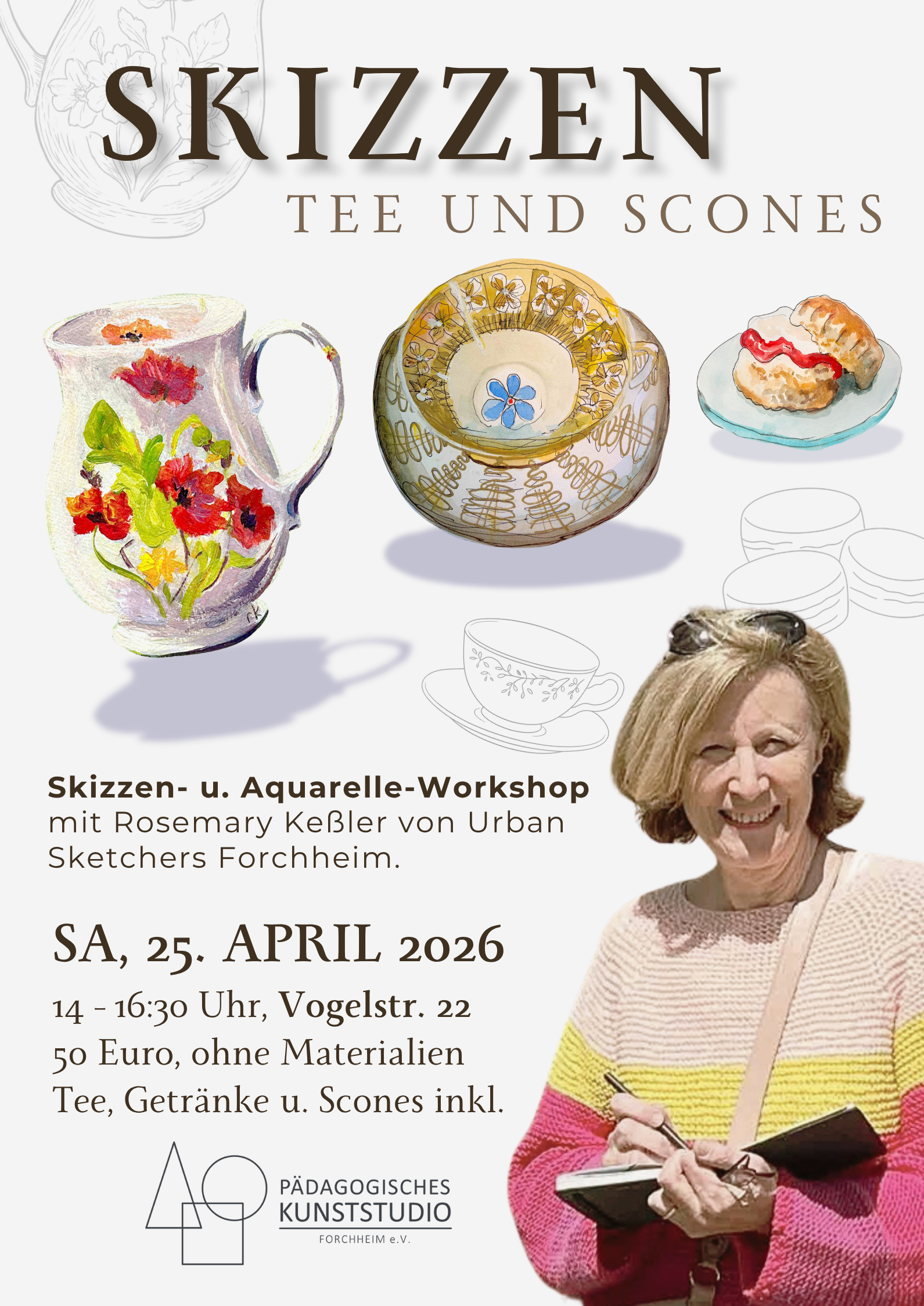 Pädagogisches Kunststudio Forchheim e. V. – ein gemeinnütziger Verein in Forchheim. Wir bieten klassische bildende Kunst für Kinder, Jugendliche und Erwachsene – mit Herz, Methode und kleiner Gruppengröße. Bei uns lernst du die Grundlagen der bildenden Kunst – Zeichnen, Malerei und plastisches Gestalten – nach bewährten Methoden. In unserem inspirierenden Atelier wachsen Konzentration, Achtsamkeit und Ausdruckskraft. Mit Geschichte & Theorie verstehst du Kunst tiefer, bekommst persönliches Feedback und erlebst Gemeinschaft durch Projekte und Ausstellungen.